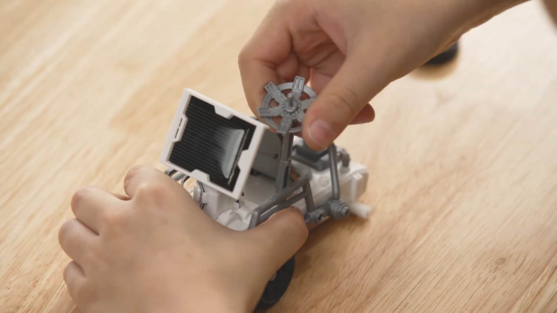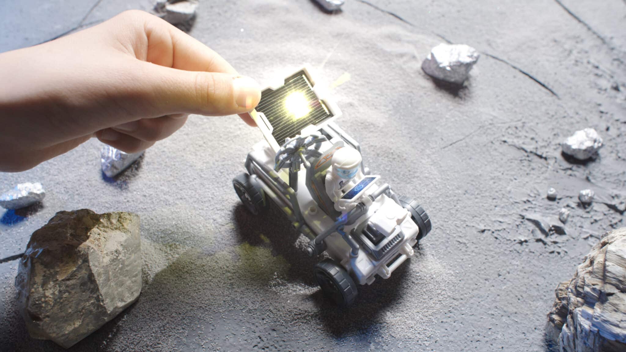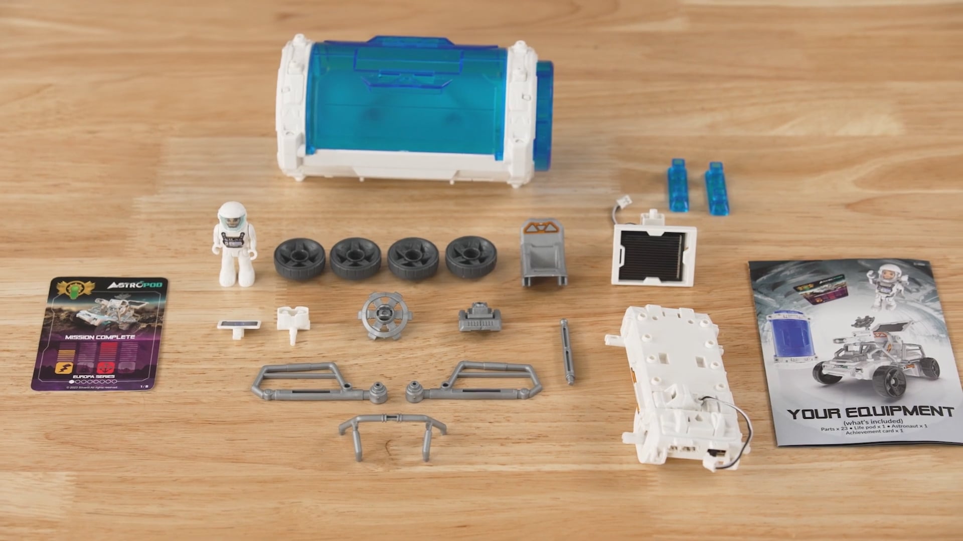 הרכיבו את רכב החלל שלכם מ-23 רכיבים איכותיים, כולל גלגלים, מנוע, חוטים ופאנל סולרי אמיתי.