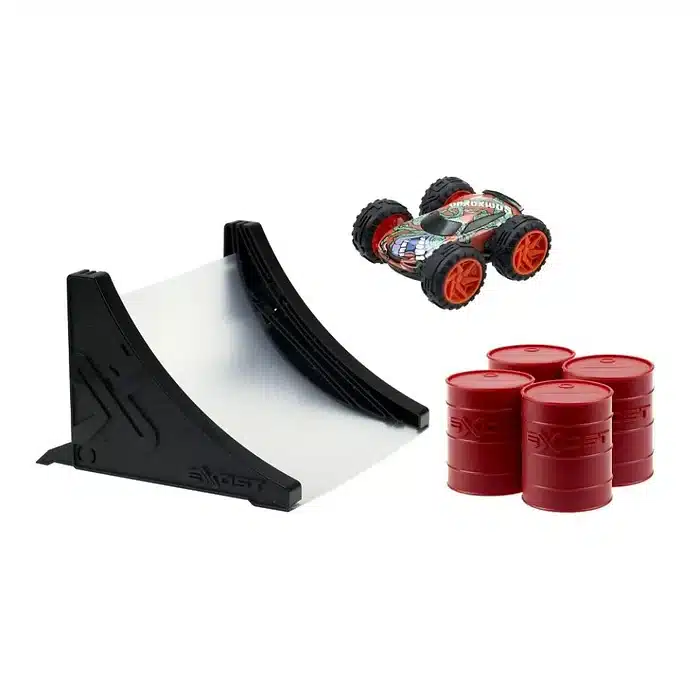 ערכת הפעלולים מגיעה עם מכונית אחת ואביזרי פעלולים שונים.