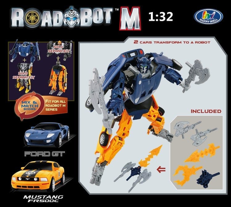 זוג מכוניות ( FORD GT וMUSTANG FR500C) מתאחדות לרובוטריק גדול.(1/32).