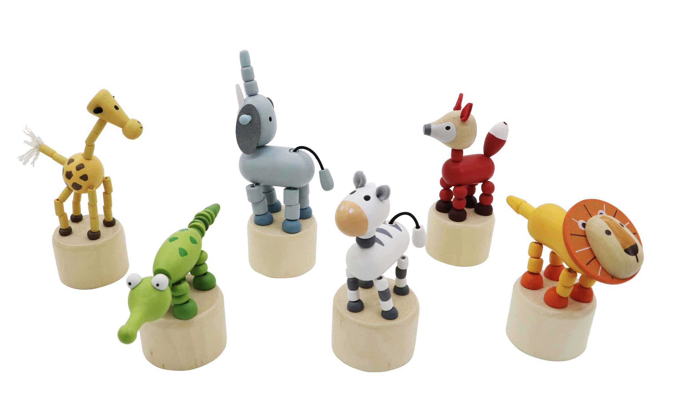 המשחק כולל חיות צבעוניות מעץ המוצבות על סטנד עם לחצן ייחודי.