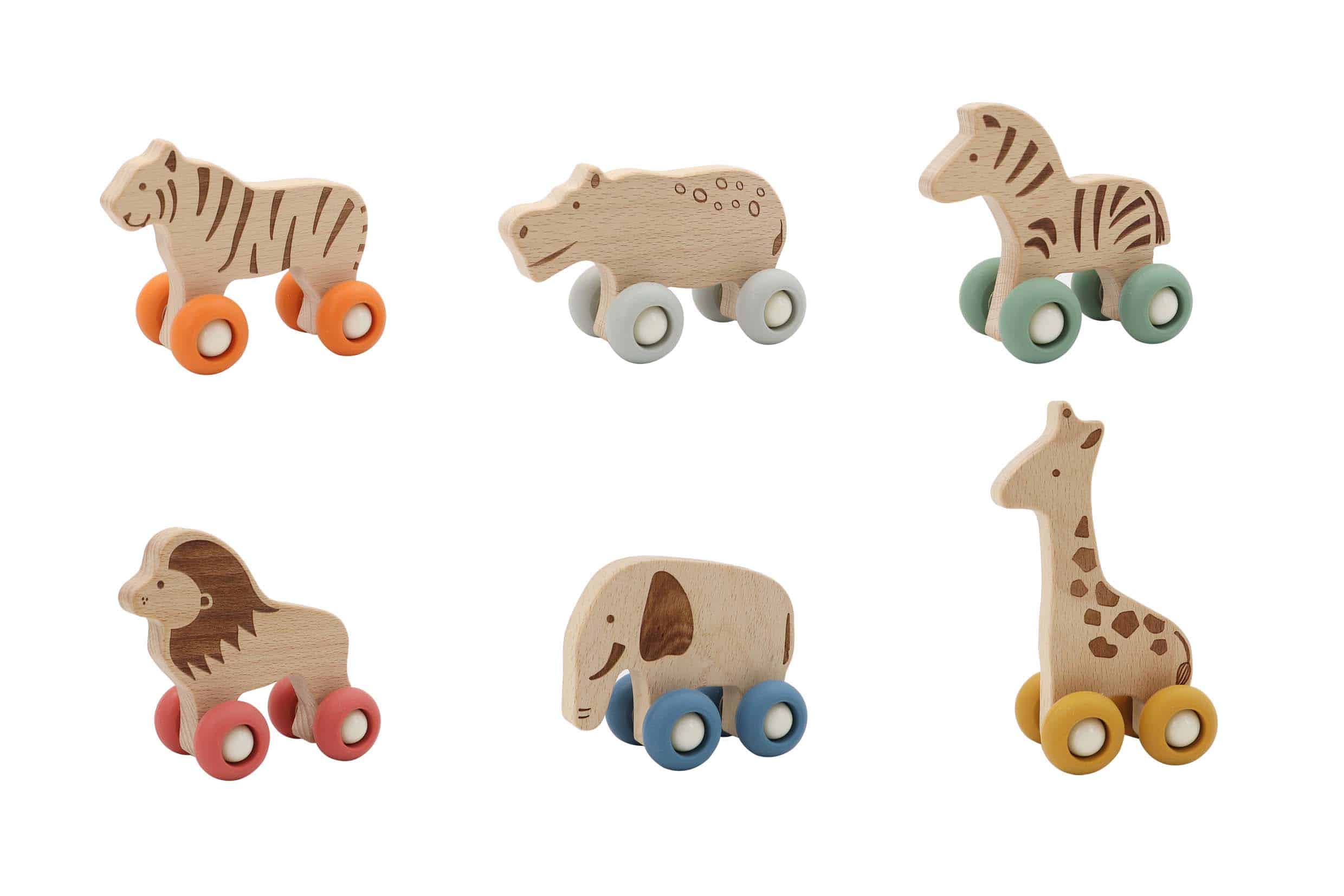 החיות עשויות מעץ איכותי ומגיעות על גלגלי סיליקון רכים, שמאפשרים תנועה חלקה ונעימה.