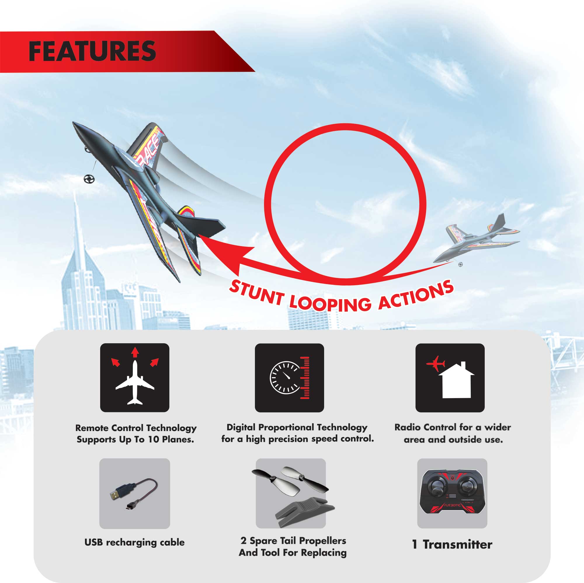 X-Twin Loop עשוי מחומר EPP מוקצף עמיד וקל משקל, ומצויד בבקרת 2.4GHz לשליטה מדויקת.