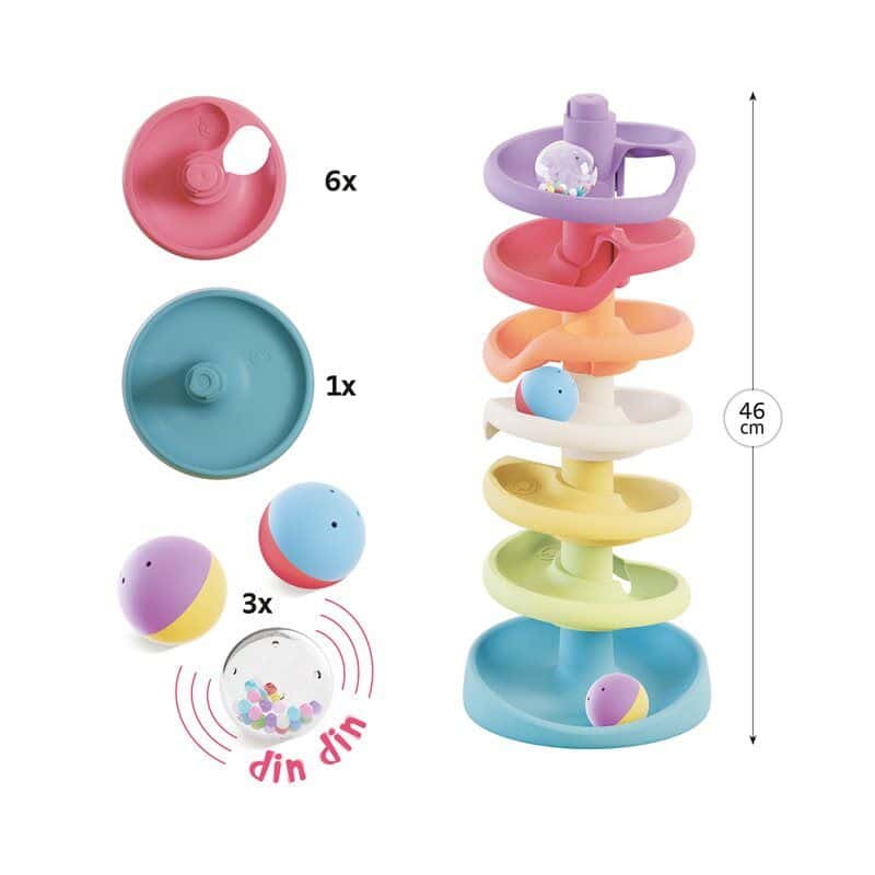 המשחק כולל 10 חלקים צבעוניים ומעוצבים, המאפשרים להרכיב מגדל ספירלה מרהיב.
