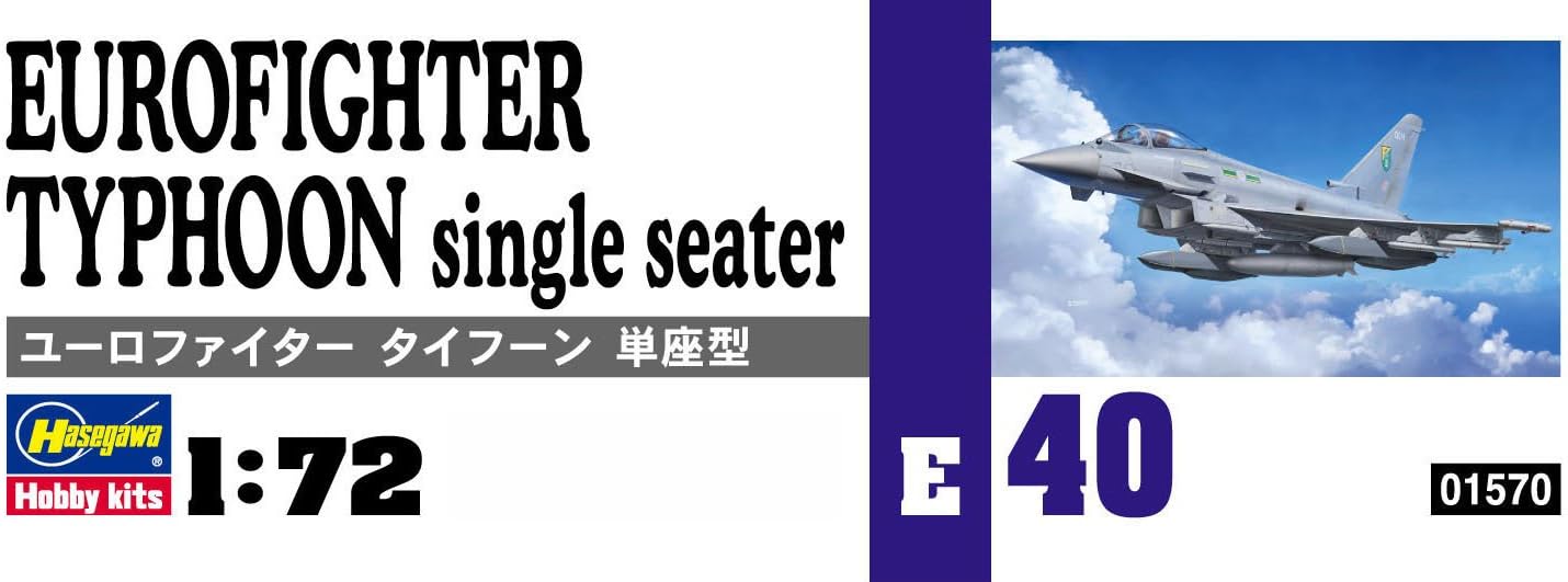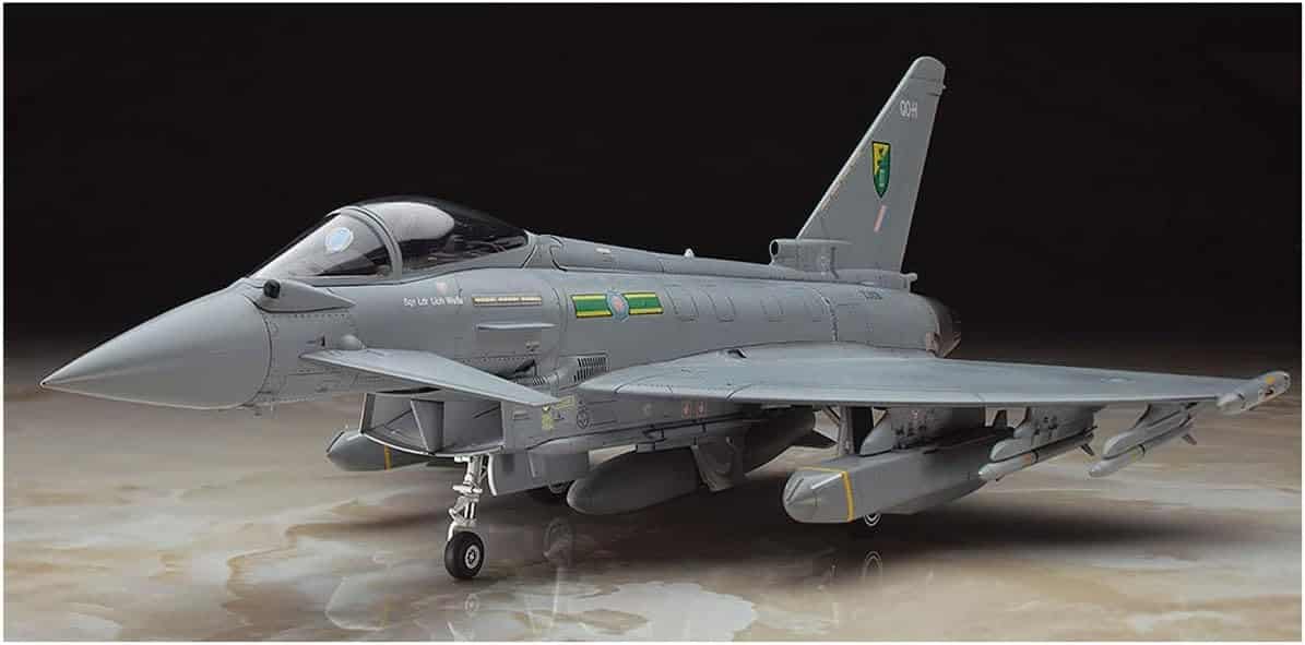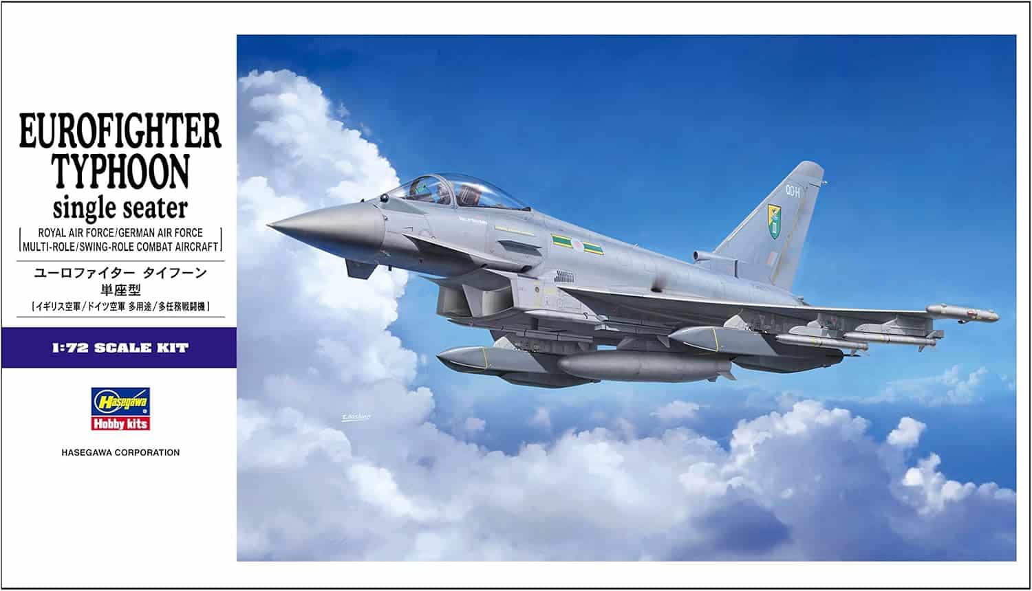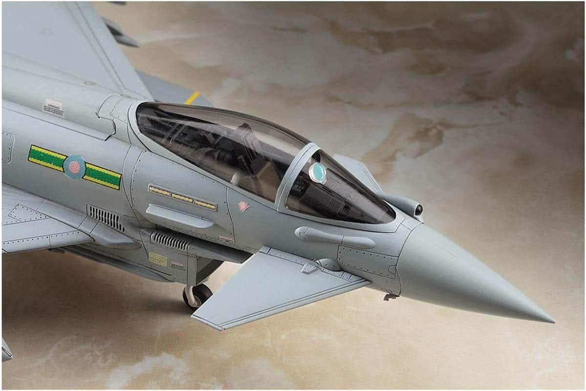 דגם הפלסטיק של Hasegawa מציג את מטוס הקרב המתקדם Eurofighter Typhoon, אחד ממטוסי הקרב המודרניים ביותר שנכנסו לשירות באירופה.