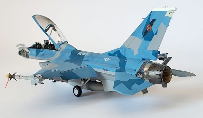 הדגם משחזר את הקווים החלקים והאגרסיביים של ה־F-16, כולל חופה דו־מושבית, כנף דלתא־למחצה, כונס אוויר תחתון ויחידת זנב בודדת.