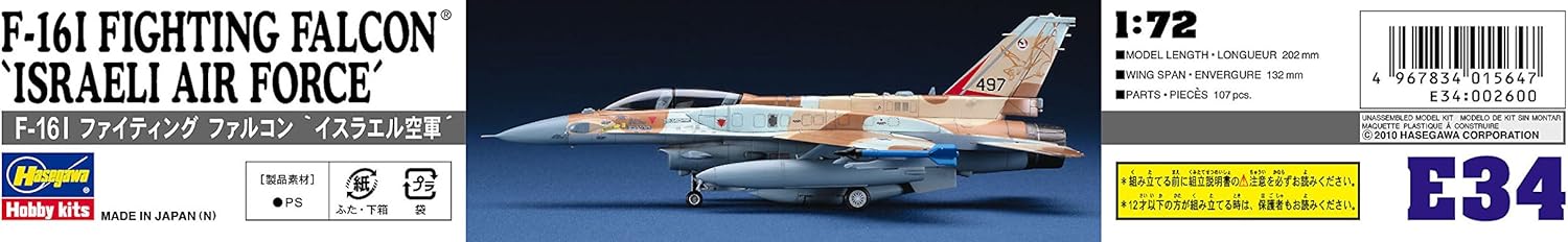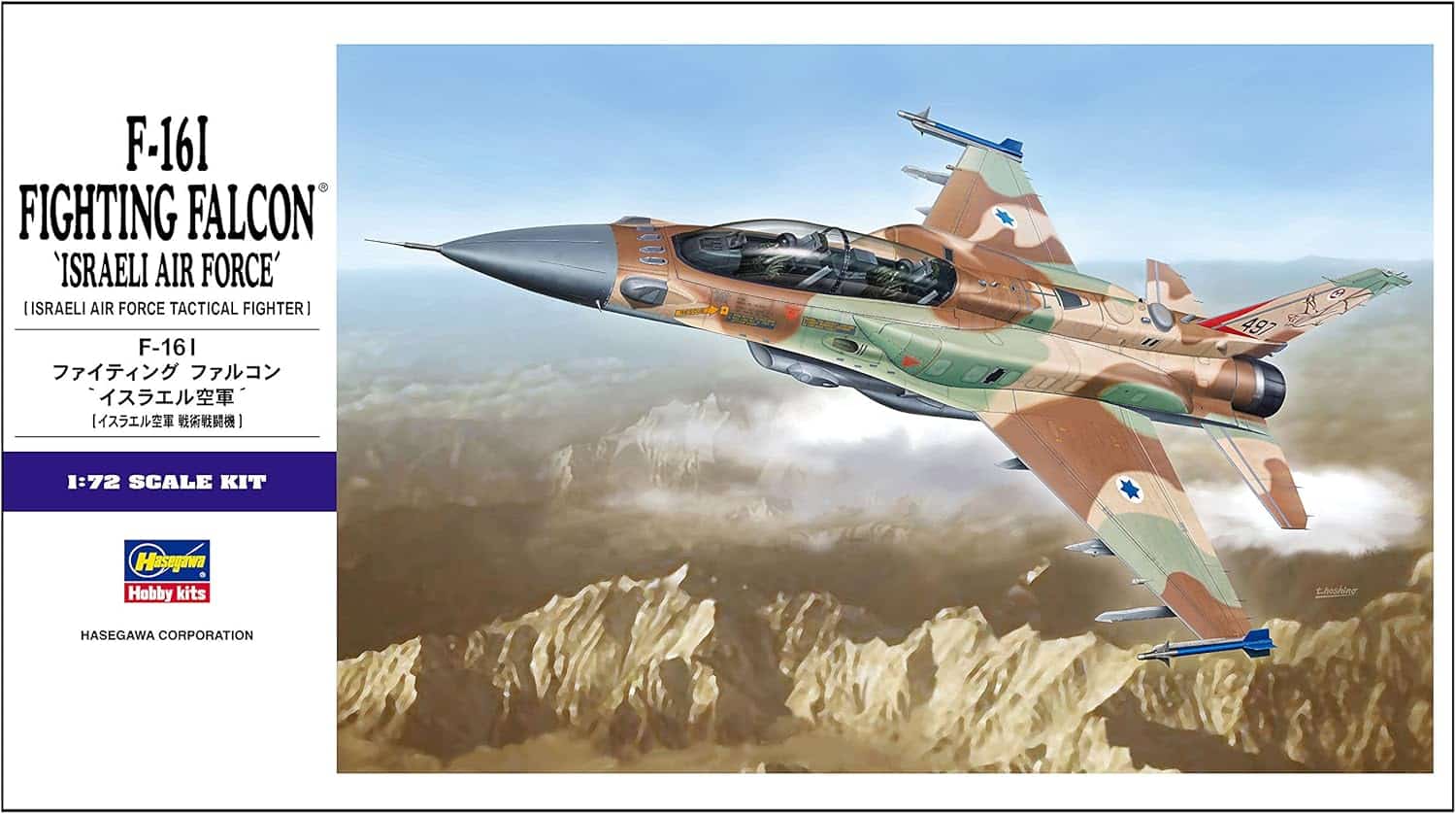 דגם הפלסטיק של Hasegawa מציג את מטוס הקרב F‑16I Sufa, אחת הגרסאות המתקדמות של מטוס ה-F-16 בשירות חיל האוויר הישראלי.