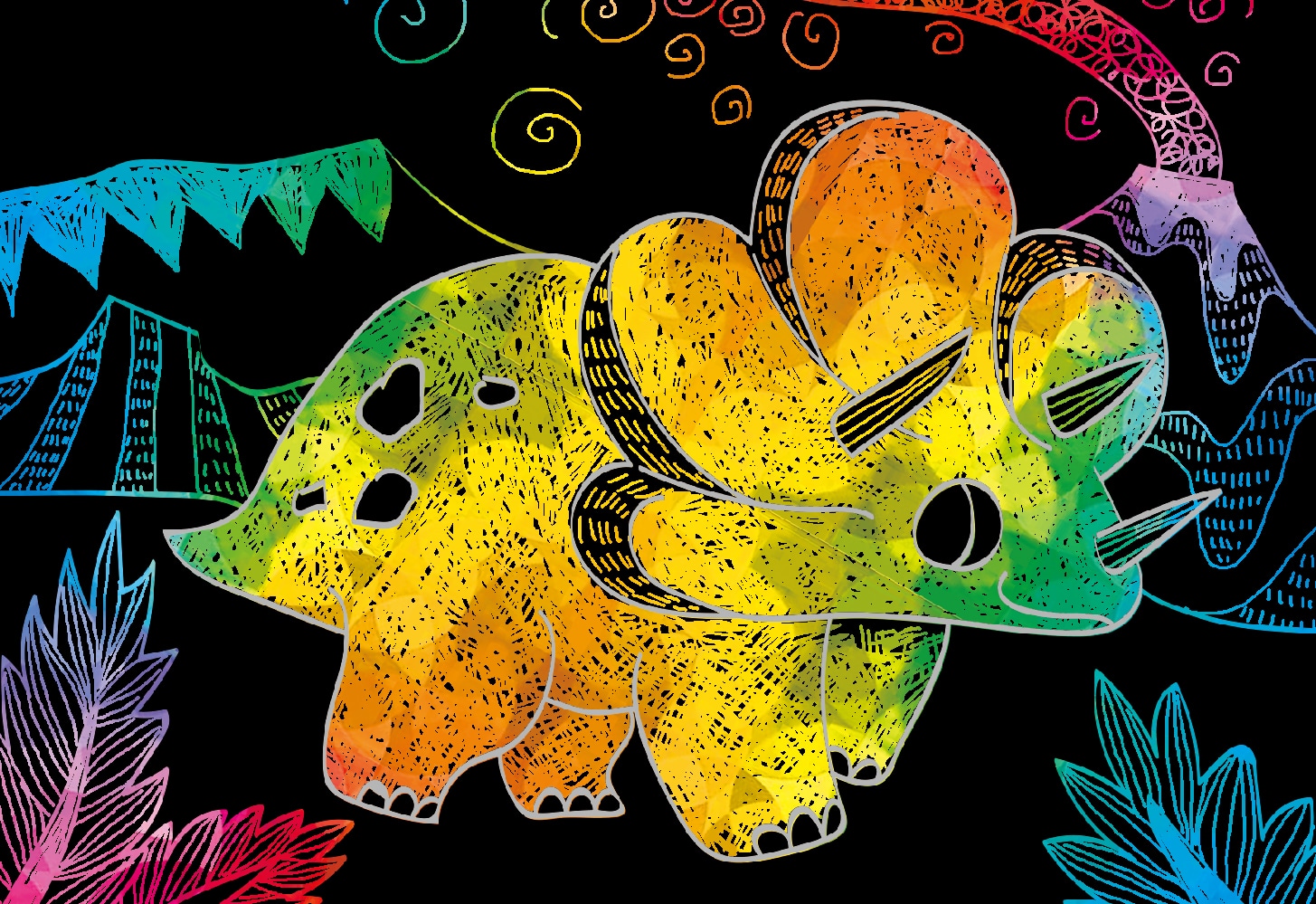 כולל 15 דפי גירד מהנים עם דינוזאורים מגניבים , שמוכנים לגרידה בעזרת עט הגירוד המיוחד.