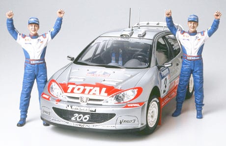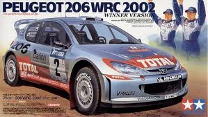מודל של מכונית פיגו 206 WRC שנת 2002 בקנה מידה 1/24 תוצרת TAMIYA.