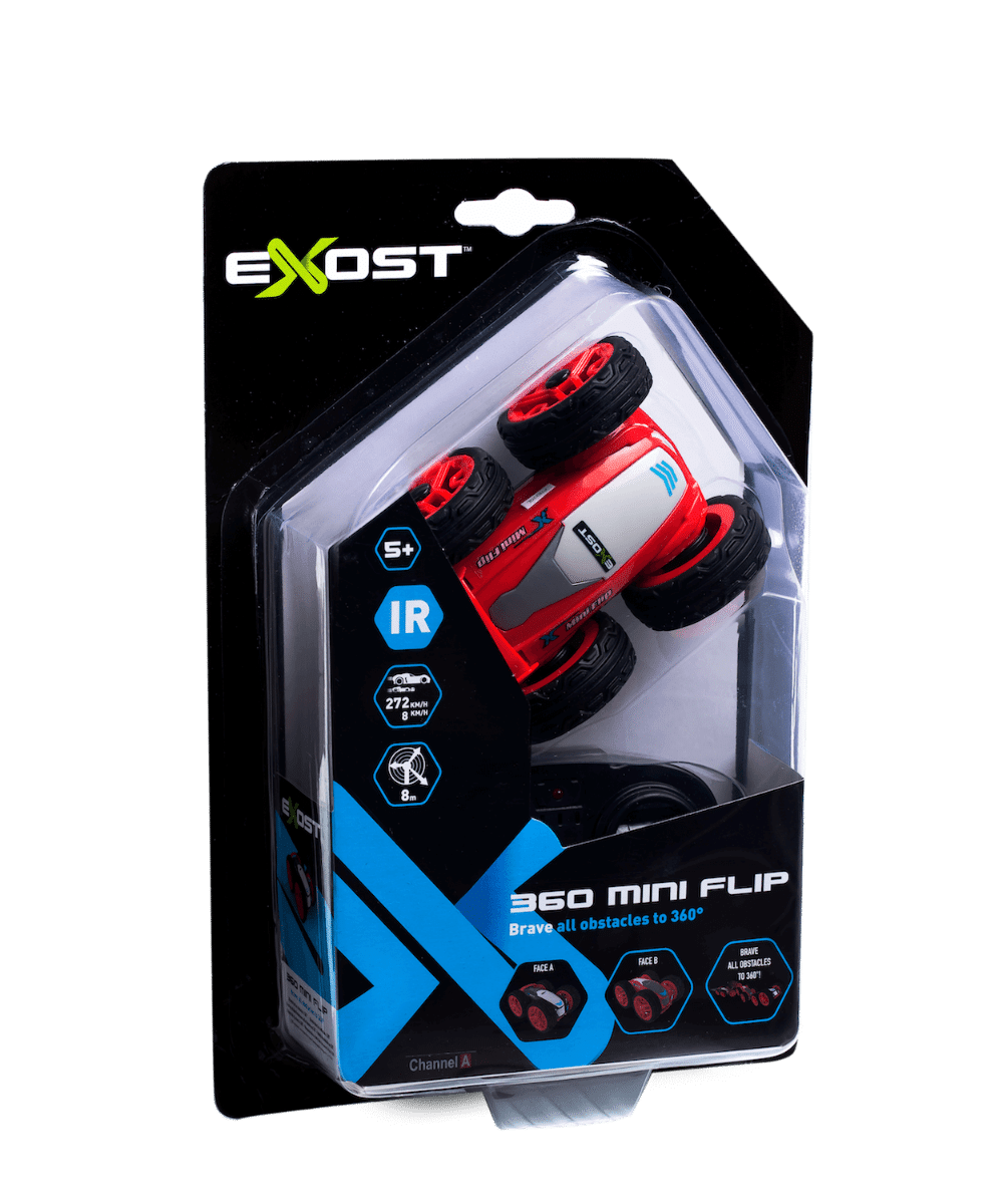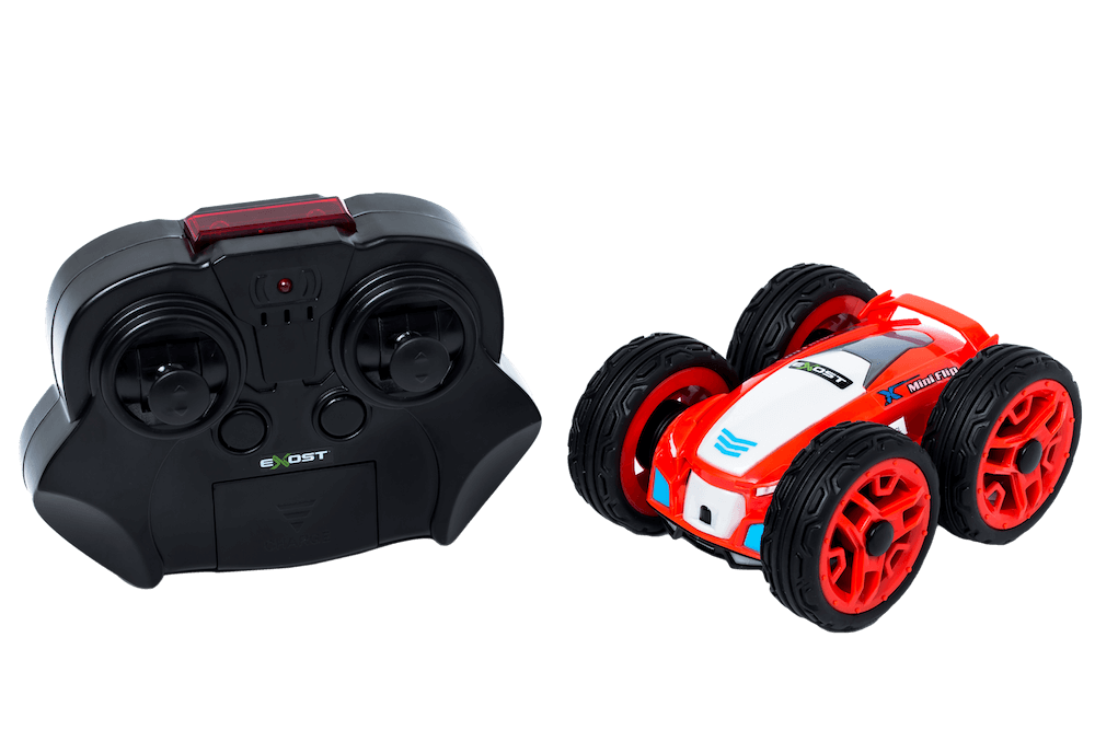 מכונית עם עיצוב צבעוני ופנסים משני הצדדים, שמסוגלת להתהפך ולנסוע על שני הצדדים.