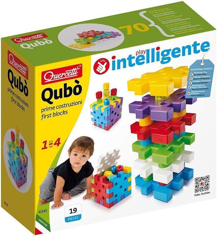 קוביה קובו 19 חלקים של Quercetti הוא משחק הרכבה חינוכי, המיועד לילדים מגיל שנה ומעלה.