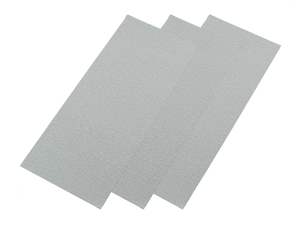 נייר שיוף איכותי מבית Tamiya, כלי חיוני לכל חובב דגמים. מתאים לשיוף קווי חיבור והכנת המשטח לפני גימור סופי.