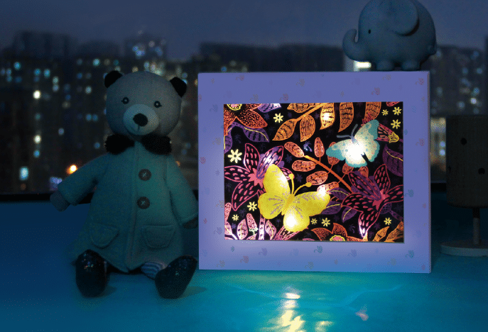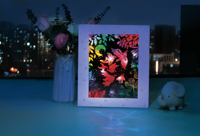 הקופסה עצמה הופכת למסגרת למנורת לילה,כך שתוכלו להיות יצירתיים ולהפוך כל סצנה ליצירת אמנות מוארת ומרהיבה.