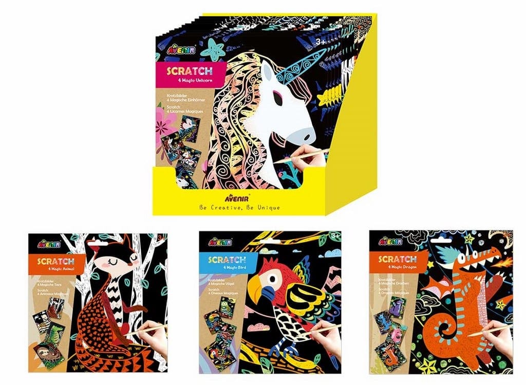 בכל ערכה ישנם 4 לוחות שונות לגירוד.