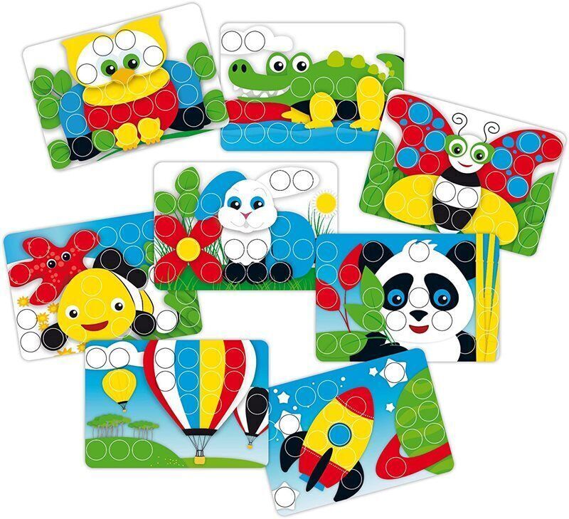 הערכה כוללת חלקים בגדלים מותאמים, שמאפשרים יצירת תמונות וצורות על לוח יציב.
